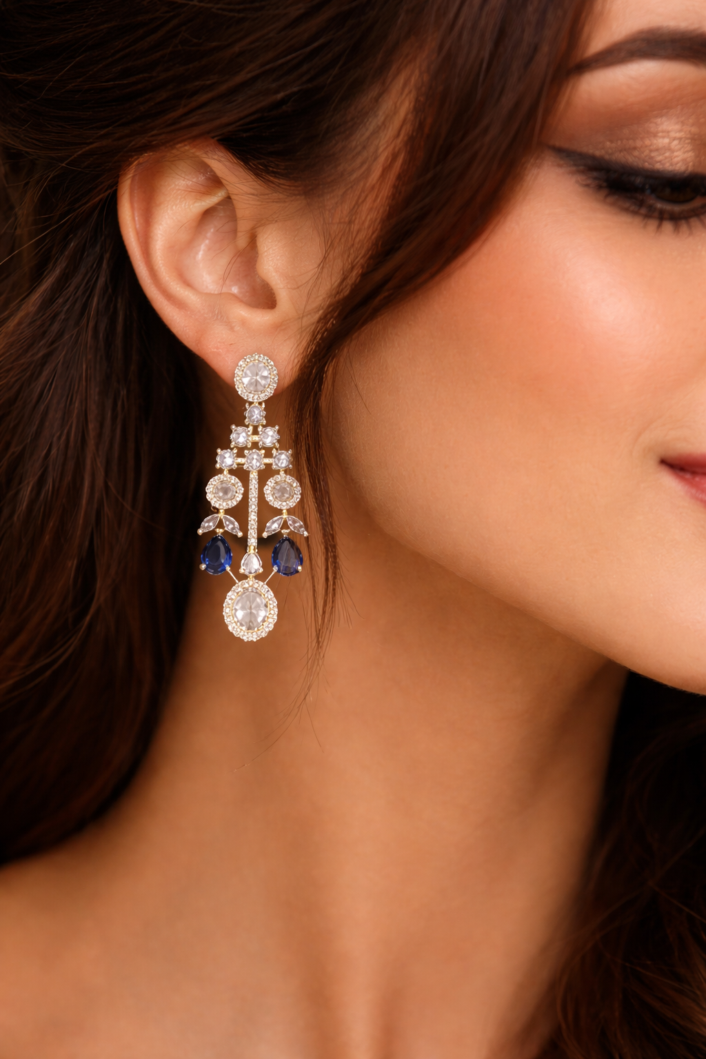 Elevate your elegance with the Midnight Sapphire Halo Drop Necklace Set, a stunning blend of timeless sparkle and modern grace. This exquisite piece features a delicate arrangement of shimmering stones, beautifully accented with deep sapphire-toned drops that add a touch of royal sophistication.