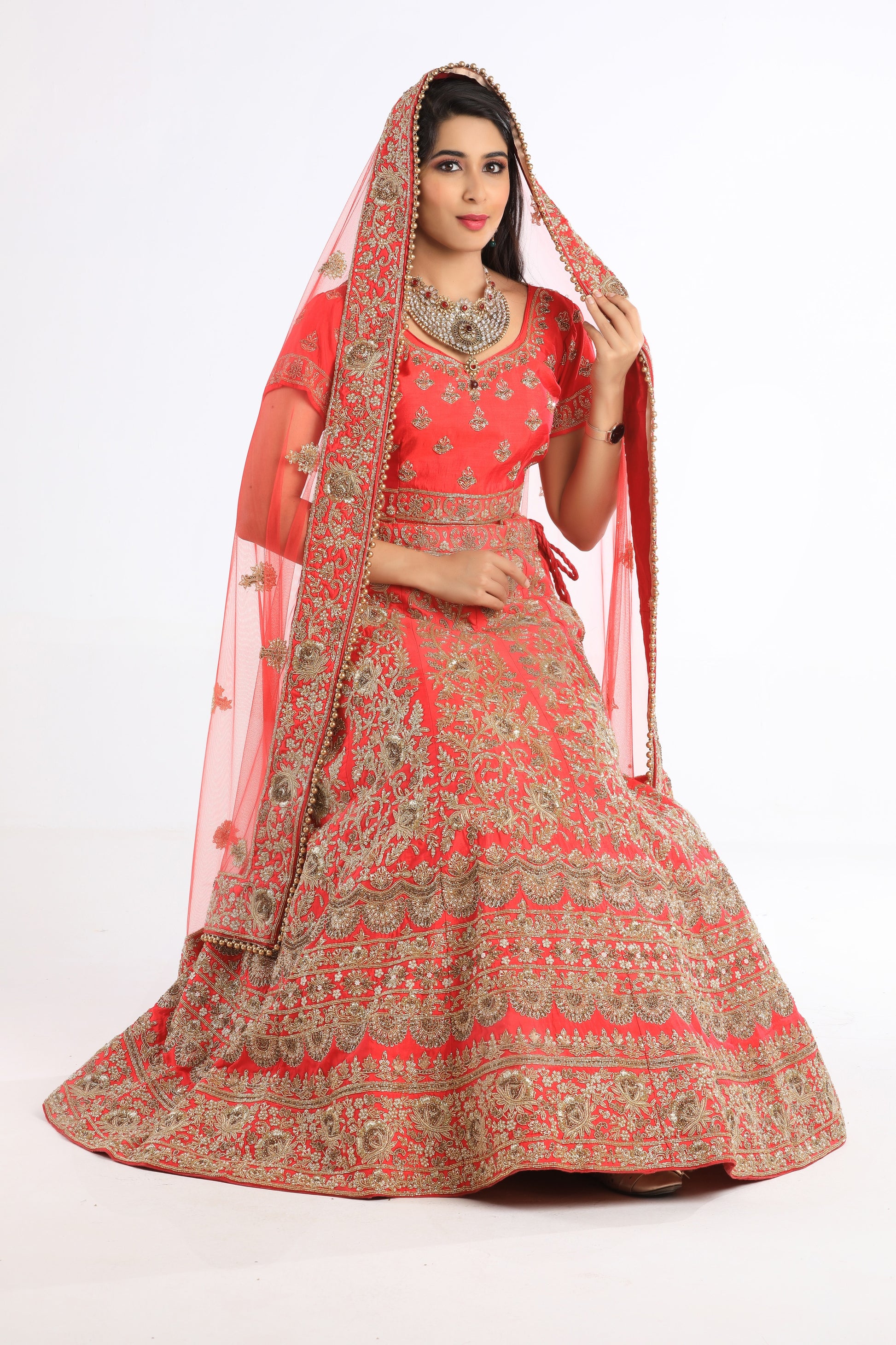 A bright pink rajasthani lehenga in pure silk provides a grand entrance to any wedding. Adorned with gota pati sequins and zari the bridal party can start their celebrations The Natasha Bright Pink Rajasthani Lehenga is the epitome of luxury and elegance in pure silk. It's a work of art, carefully adorned with intricately crafted gota pati sequins and zari. This lehenga will make a grand entrance and elevate any wedding celebration.