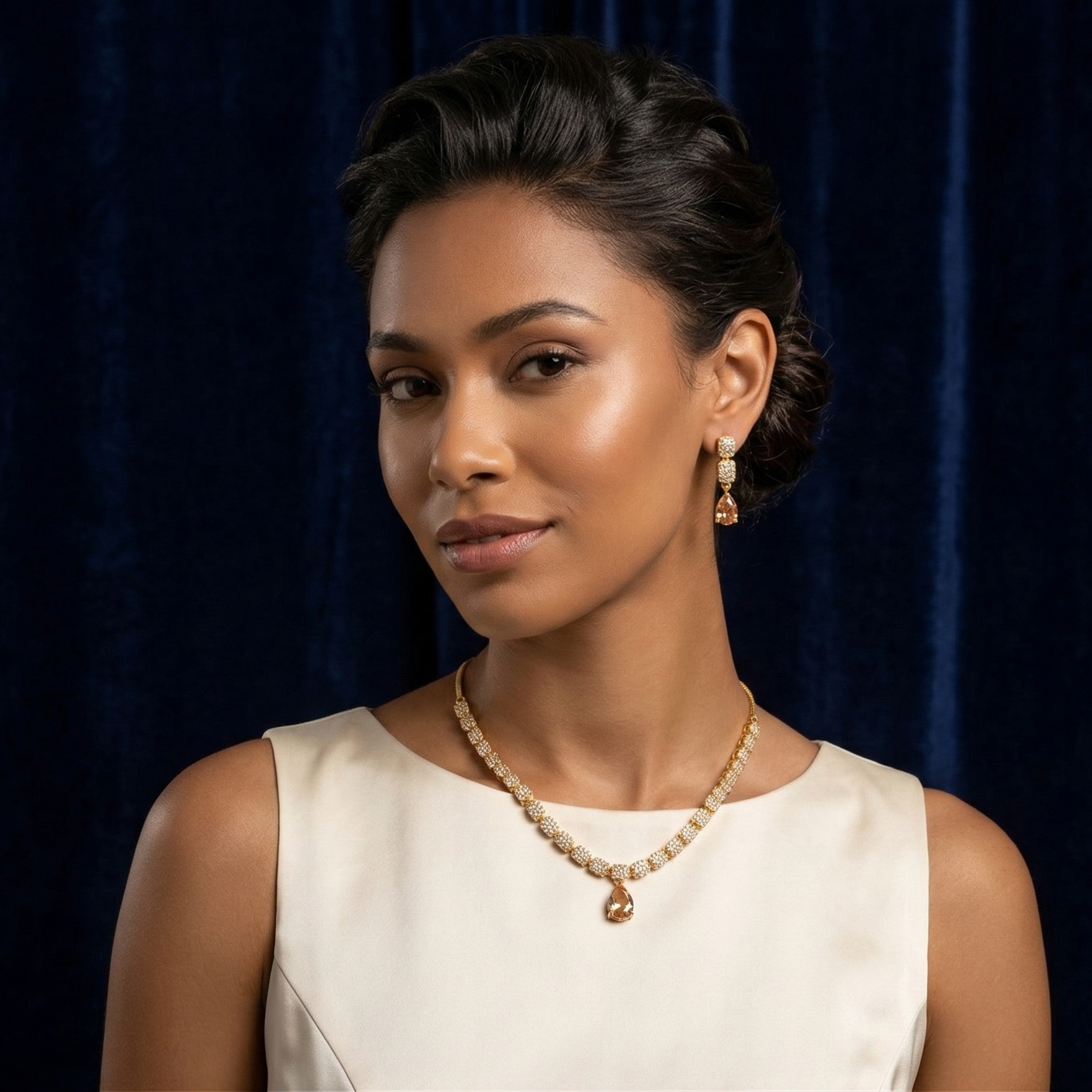 Coordinated Style: The matching earrings echo the necklace's elegance with a linear drop design, making them the perfect pair for weddings, galas, or formal dinners.